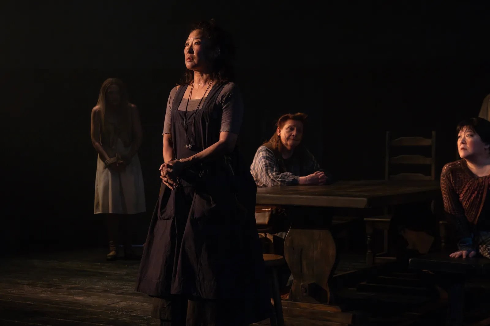 There’s a great beating heart at the center of Lucy Kirkwood’s The Welkin, making its American debut after an ill-timed January 2020 premiere at London’s National Theatre. Fans of Sandra Oh’s masterful work on Killing Eve and Grey’s Anatomy won’t be surprised to find her bringing the same kind of acerbic warmth and casually razor-sharp intelligence that Eve Polastri and Dr. Cristina Yang shared to Elizabeth Luke, an 18th-century English midwife who finds herself wrapped up in a murder trial. Even churning butter, which Oh approaches with a ferocious purposefulness, Lizzy still has lots of bite.